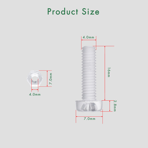- Thread Size: M4 * 16 mm / 0.16 * 0.63 inches ( D * H )