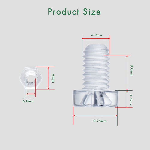 M6 * 8 mm PC Clear Acrylic Screw and Nut Kit