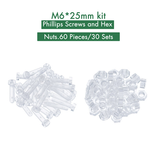 M6 * 25 mm PC Clear Acrylic Screw and Nut Kit