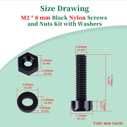 • Nut Size: M2 * 2 mm / 0.08 * 0.08 inches ( ID * T )