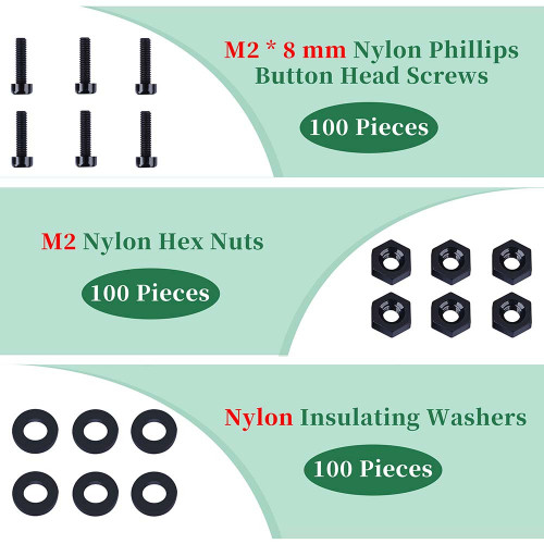 • 100 pieces M2 * 8 mm black nylon phillips button head screws * 1