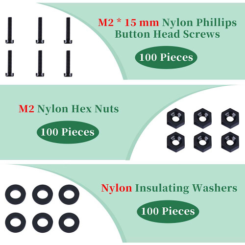 • 100 pieces M2 * 15 mm black nylon phillips button head screws * 1