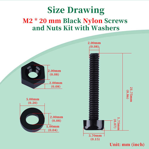 • Nut Size: M2 * 2 mm / 0.08 * 0.08 inches ( ID * T )