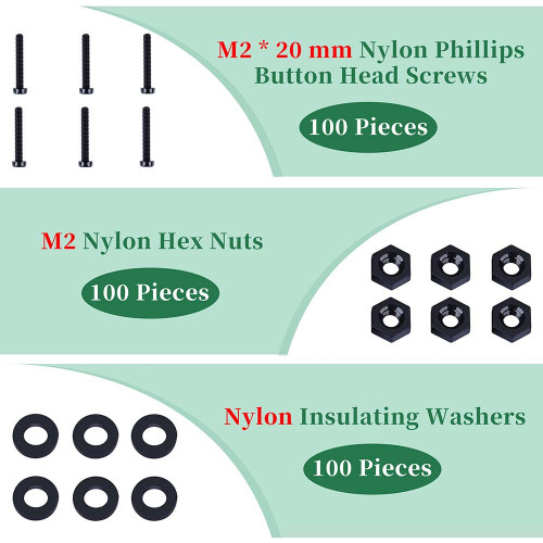 • 100 pieces M2 * 20 mm black nylon phillips button head screws * 1
