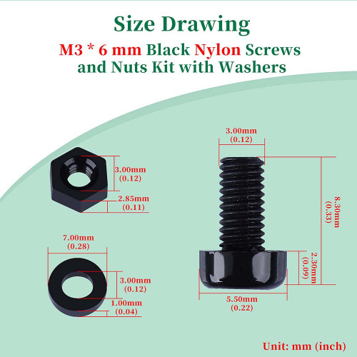 - Nut Size: M3 * 2.85 mm / 0.12 * 0.11 inches ( ID * T )