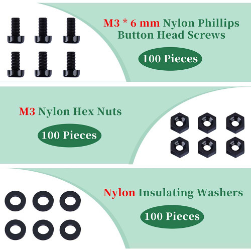 - 100 pieces M3 * 6 mm black nylon phillips button head screws * 1