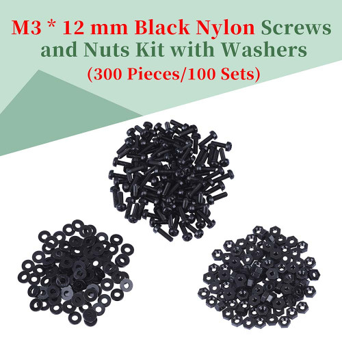 M3 * 12 mm Black Nylon Screws and Nuts Kit with Washers