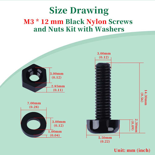 • Nut Size: M3 * 2.85 mm / 0.12 * 0.11 inches ( ID * T )