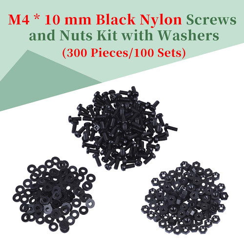 M4 * 10 mm Black Nylon Screws and Nuts Kit with Washers