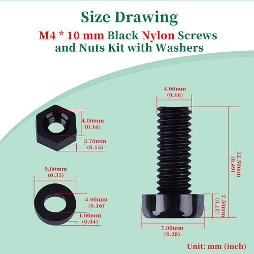 • Thread Size: M4 * 10 mm / 0.16 * 0.39 inches ( D * H )