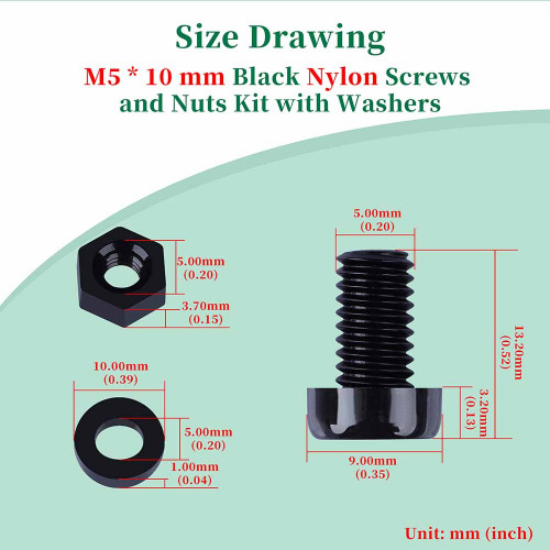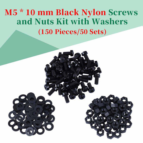 M5 * 10 mm Black Nylon Screws and Nuts Kit with Washers