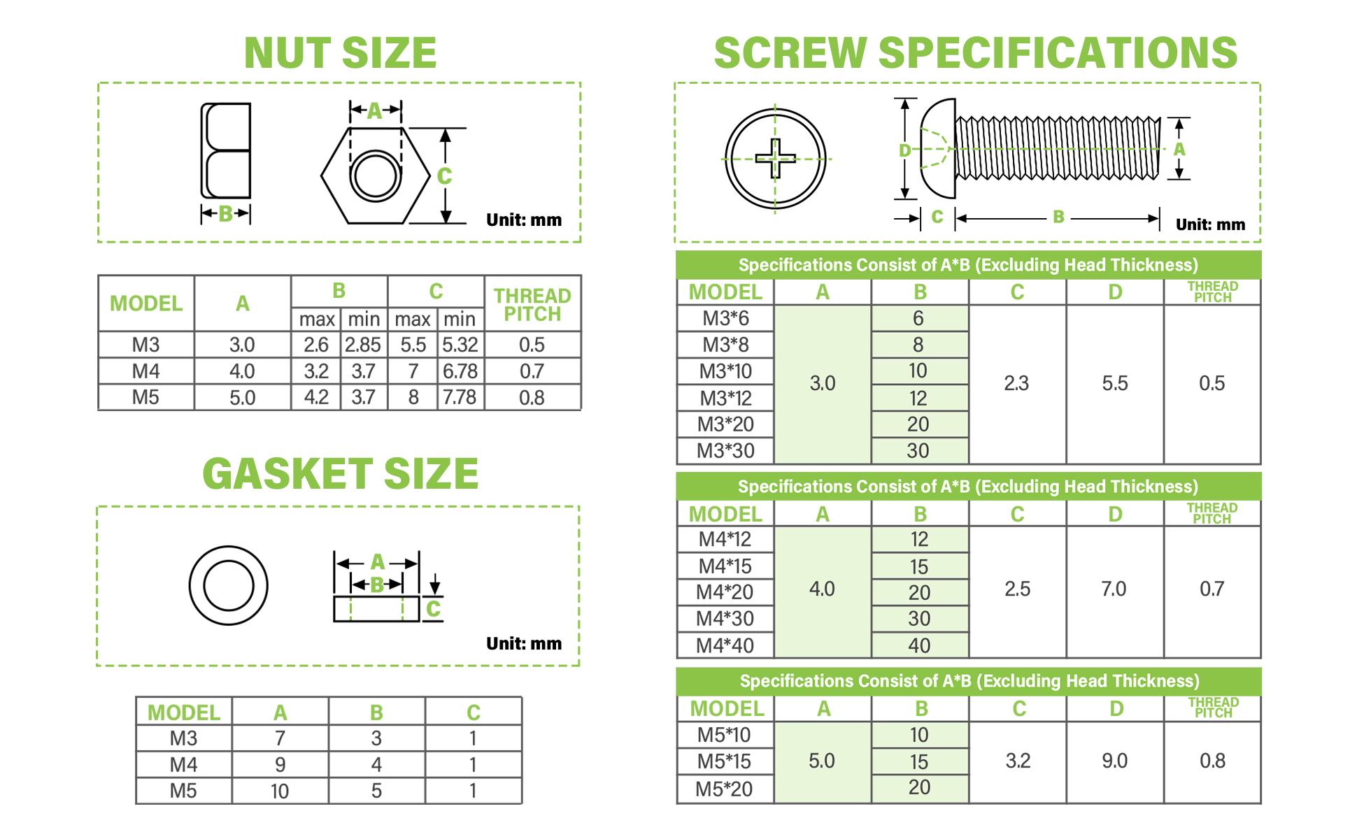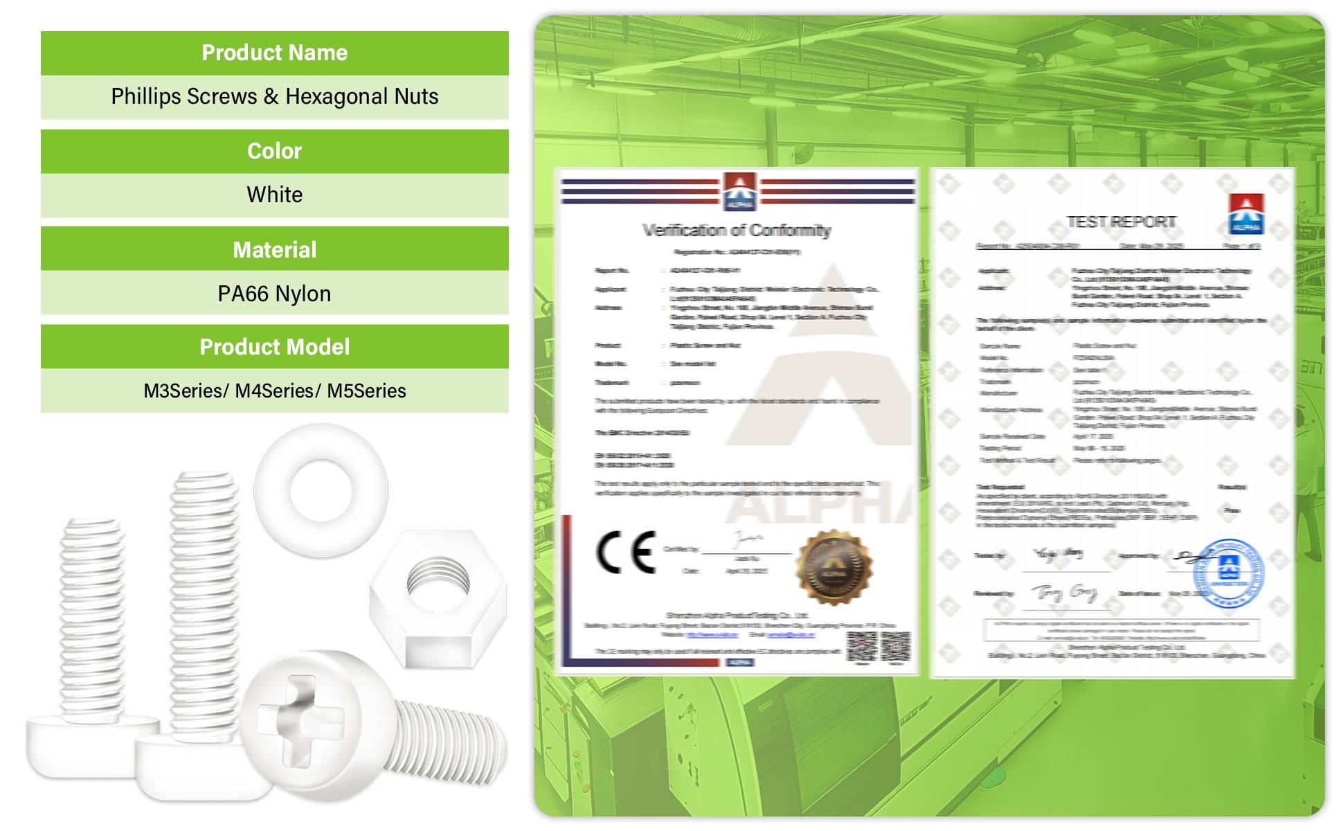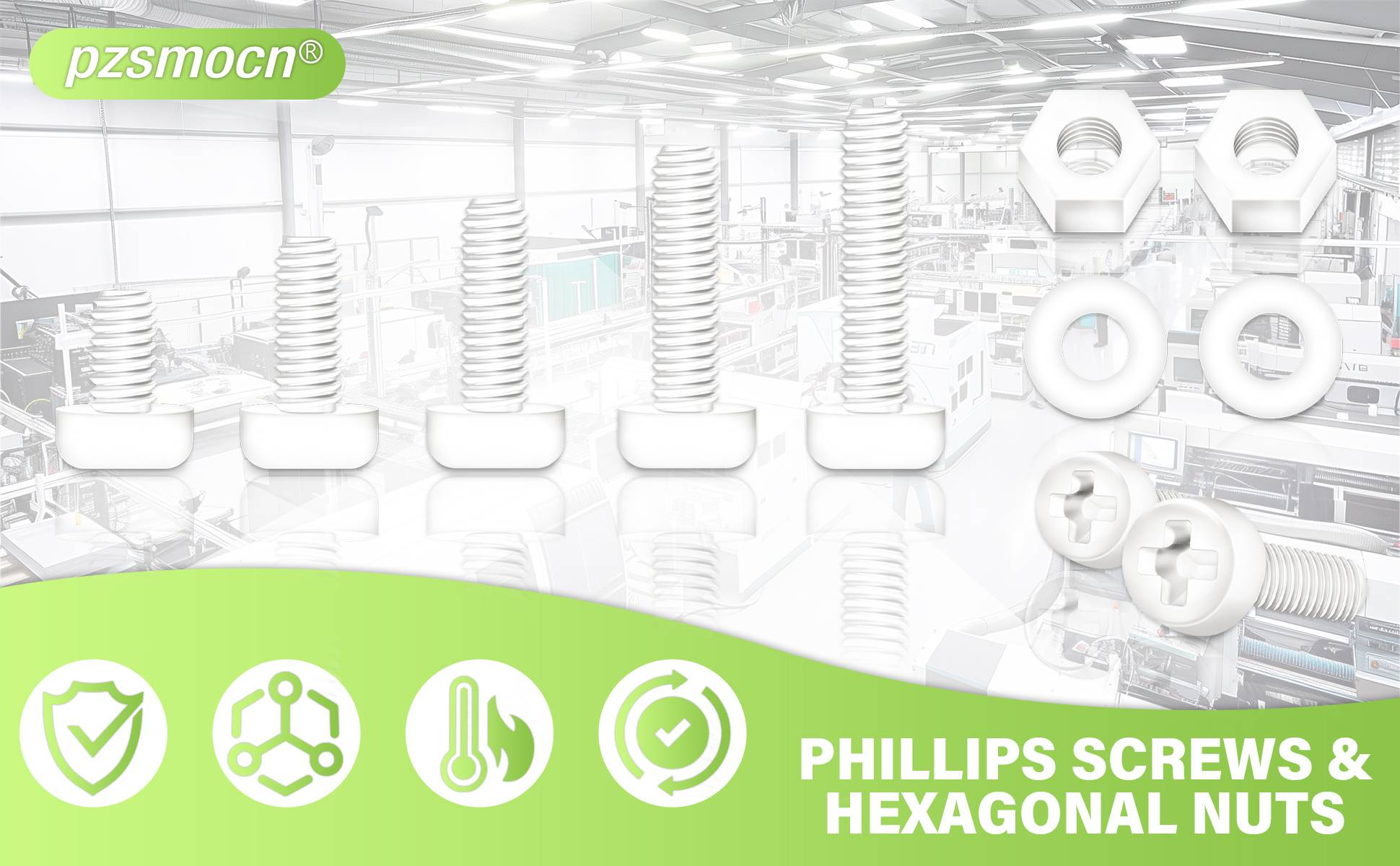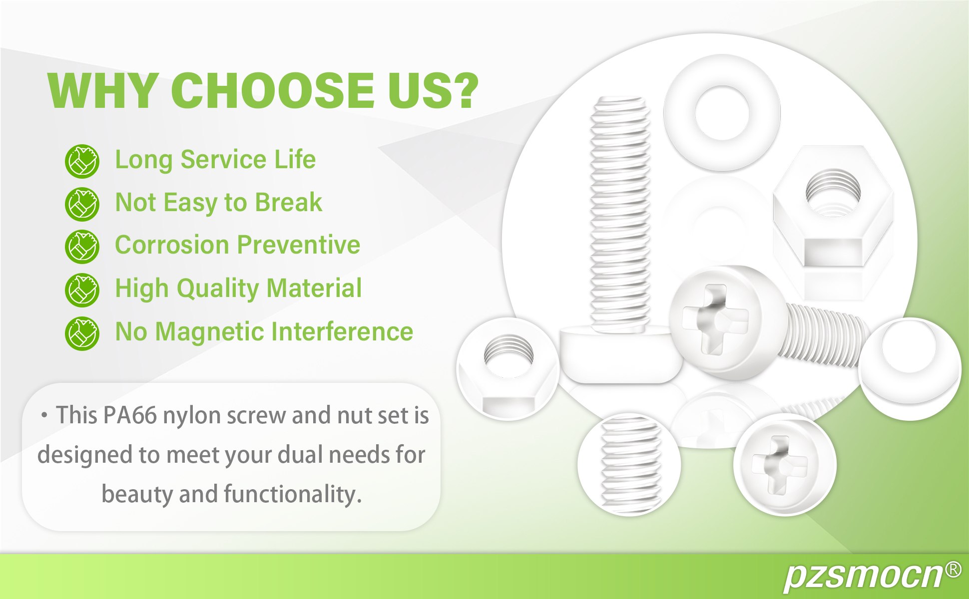 M3*30 mm White Nylon Screws and Nuts Kit with Washers(300 Pieces/100 Sets)