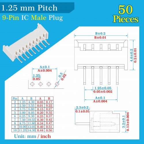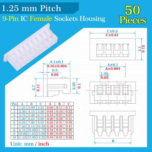 1 * 1.25 mm Pitch 9 Pin Connector kit (50 Sets/550 Pieces)