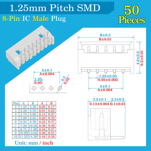 1.25mm Pitch 8 Pin SMD Connector Kit
