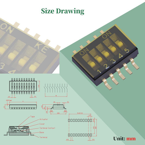 1.27 mm Pitch 5 Position / 10 Pin Dual Row SMT Patch DIP Switch