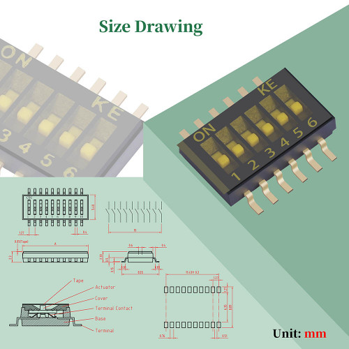 The DIP switch is an address switch used for operation control. It adopts the binary coding principle of 0/1. The pitch is 1.27 mm, the volume is small, and it occupies less space on the circuit board, which is suitable for use in micro and precise equipment. It is widely used in data processing, communication, remote control, anti-theft automatic alarm system, air shower, air conditioning control panel, train model and other products that require manual programming.