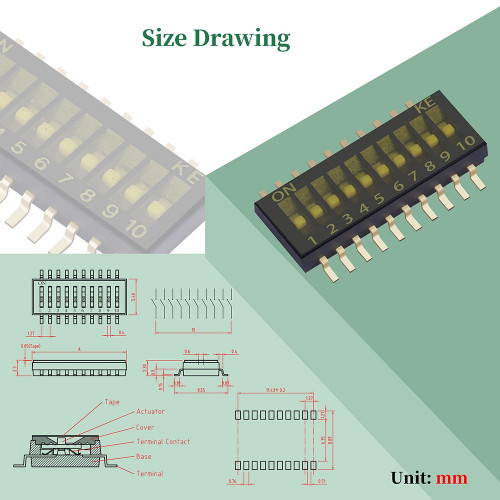 1.27 mm Pitch 10 Position / 20 Pin Dual Row SMT Patch DIP Switch