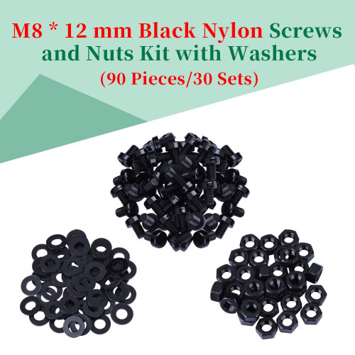 M8 * 12 mm Black Nylon Screws and Nuts Kit with Washers