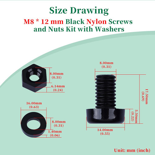 - Nut Size: M8 * 6.14 mm / 0.31 * 0.24 inches ( ID * T )