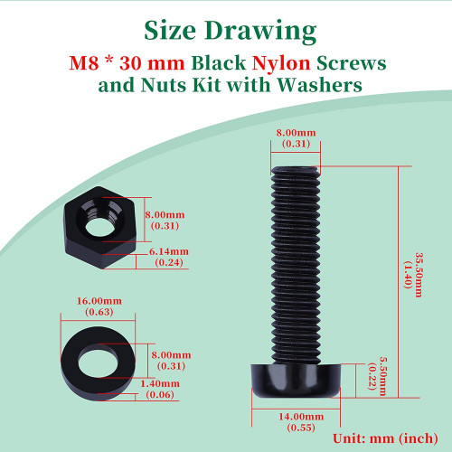 M8 * 30 mm Black Nylon Screws and Nuts Kit with Washers