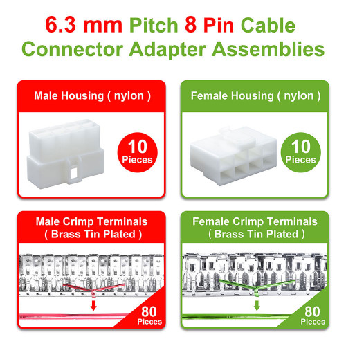 6.3 mm Pitch 8 Pin Automotive Cable Connector Adapter Assemblies Kit.