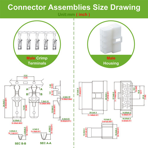 • Male Housing Length: 29.2±0.3 mm