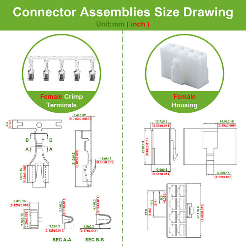 • Female Crimp Terminal Length: 21±0.2 mm