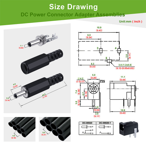 3.5*1.1 mm DC Power Male Plug and Female Socket with Shrink Tube.