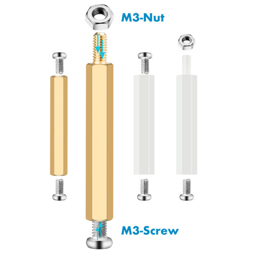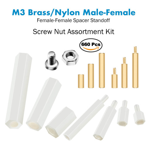 M3 Fastening Kit, Male Female Hex Brass/Nylon Spacer Standoff. (660 Pieces)