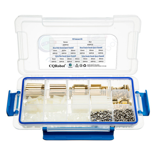 CQRobot has a kit for you that includes copper posts, nylon posts, screws and nuts.Our engineers carefully selected the most commonly used models, the most commonly used in DIY projects.Let your wonderful work do not delay because of the small parts. Different components on the grid storage box, neat and clean, improve your work efficiency. We use them to install the circuit board and help build the robot.