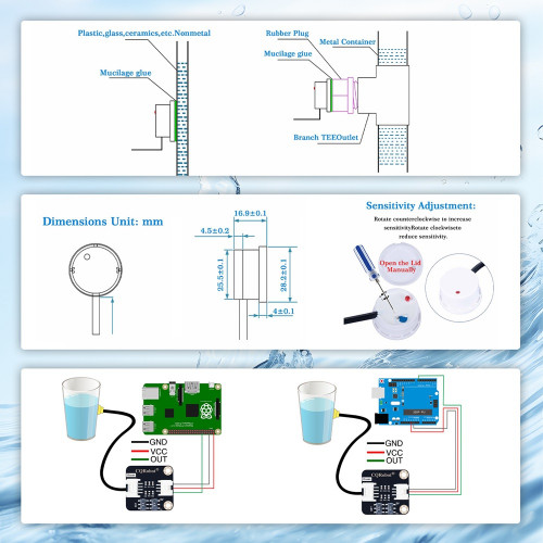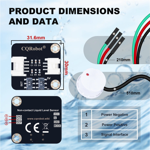 Wiki: http://www.cqrobot.wiki/index.php/Non-Contact_Water/Liquid_Level_Sensor_SKU:_CQRSENYW001