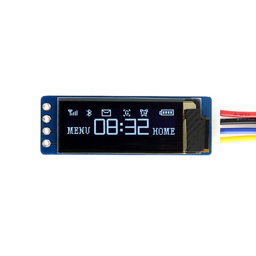 This is a general OLED display Module, 0.91inch diagonal, 128 * 32 pixels, with embedded controller, communicating via I2C interface.