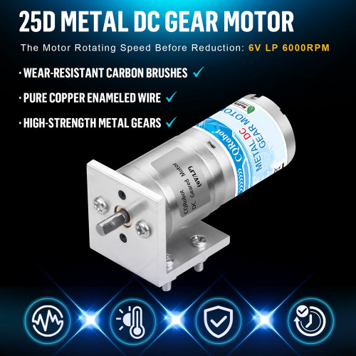 98.78:1 LP Metal DC Geared-Down Motor 25Dx47.8L mm 3W/6V with Fix Bracket.