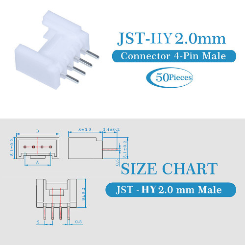 1 * 2.0mm Pitch JST - HY 4-Pin JST Connector Kit (300 Pieces/50 Set)