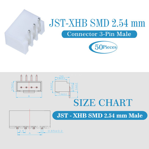 JST XHB SMD 2.54 mm 3-Pin Connector Kit