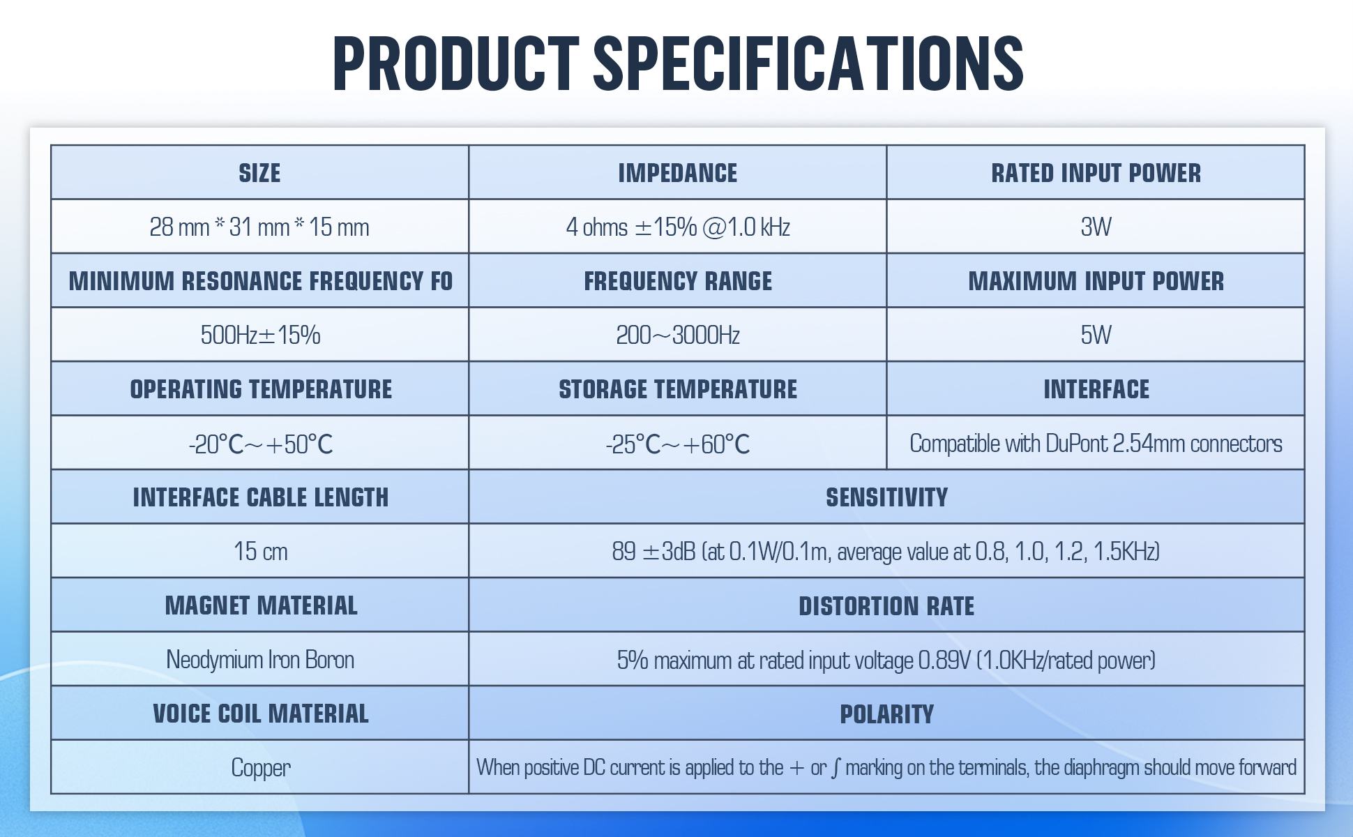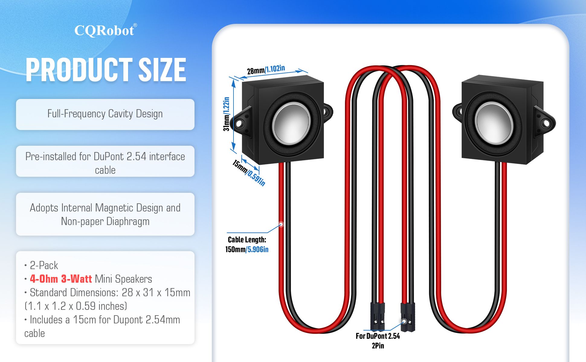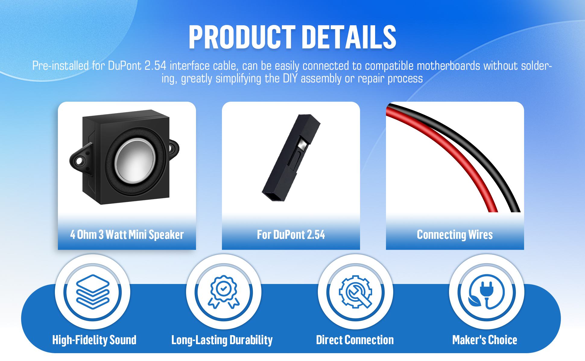 Passive Mini Speaker 4Ω 3W, DuPont 2.54mm Interface.
