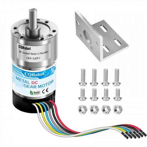 Custom 630:1 Metal DC Geared-Down Motor 37Dx65L mm 6V or 12V, with 64 CPR Encoder and Mounting Bracket.